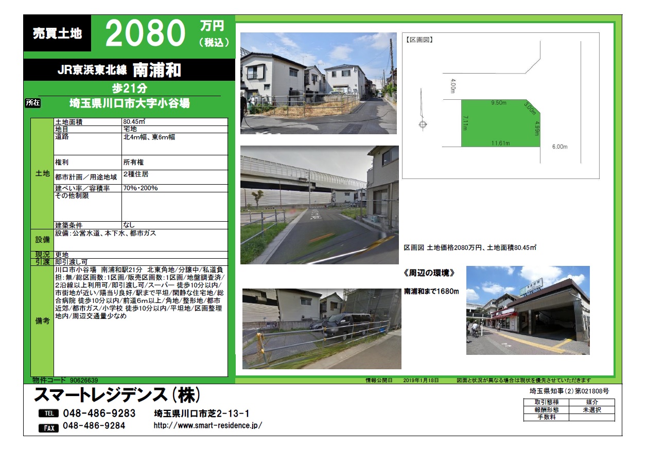 埼玉県川口市青木3丁目 埼玉高速鉄道 南鳩ヶ谷駅徒歩 15分